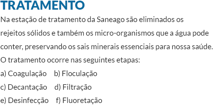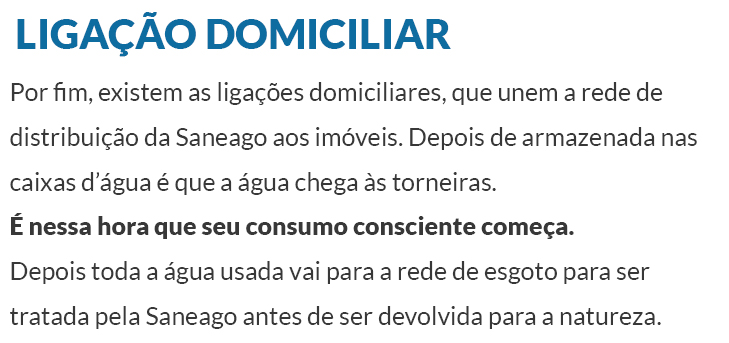 Hoje em dia, para recebermos água em casa, não precisamos mais depender de poços artesianos e cisternas, graças ao Sistema de Abastecimento de Água Tratada da Saneago.
